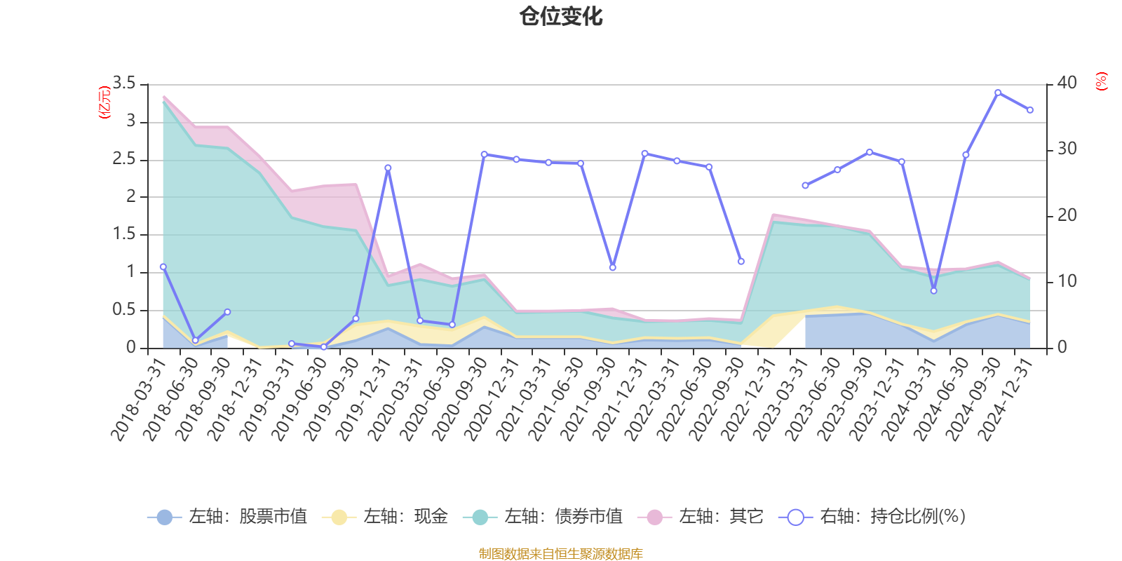 据定期报告数据统计,近三年平均股票仓位为24.29%,同类平均为18.74%。2024年三季度末基金达到38.72%的最高仓位,2019年上半年末最低,为0.2%。