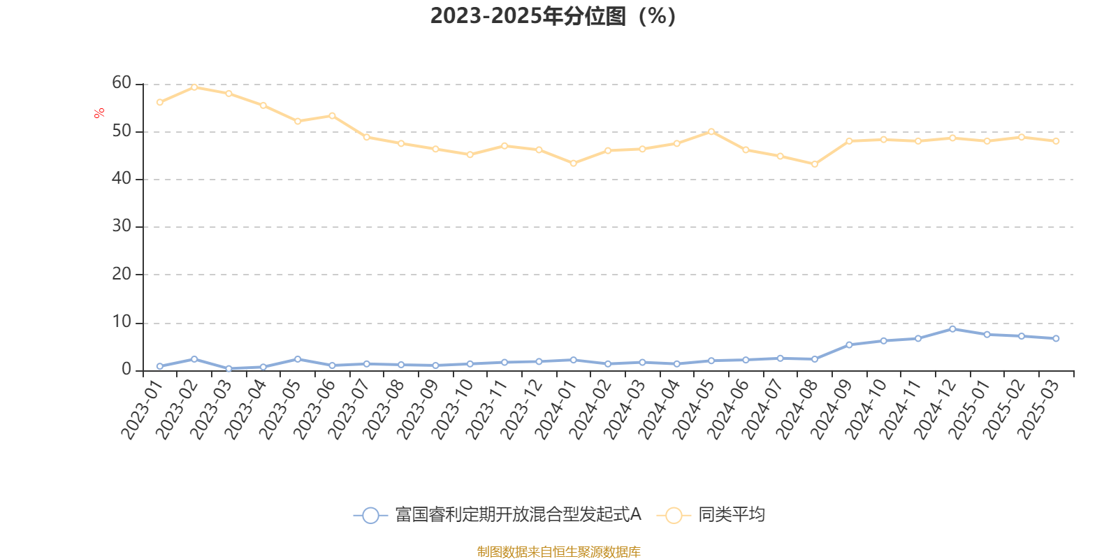 通过所选区间该基金净值增长率分位图,可以观察该基金与同类基金业绩比较情况。图为坐标原点到区间内某时点的净值增长率在同类基金中的分位数。